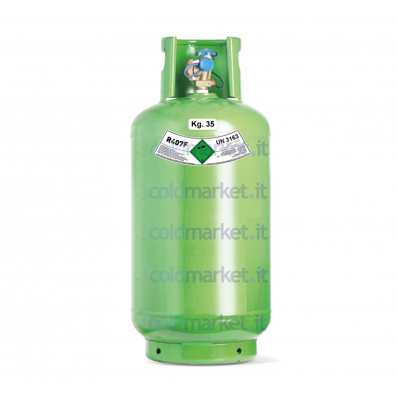 Le gaz réfrigérant R407F en bouteille de 35 kg est un réfrigérant professionnel recommandé pour les interventions intensives et continues de maintenance, assistance et réparation sur des installations de réfrigération et de climatisation déjà installées, conçues pour fonctionner avec le R407F.