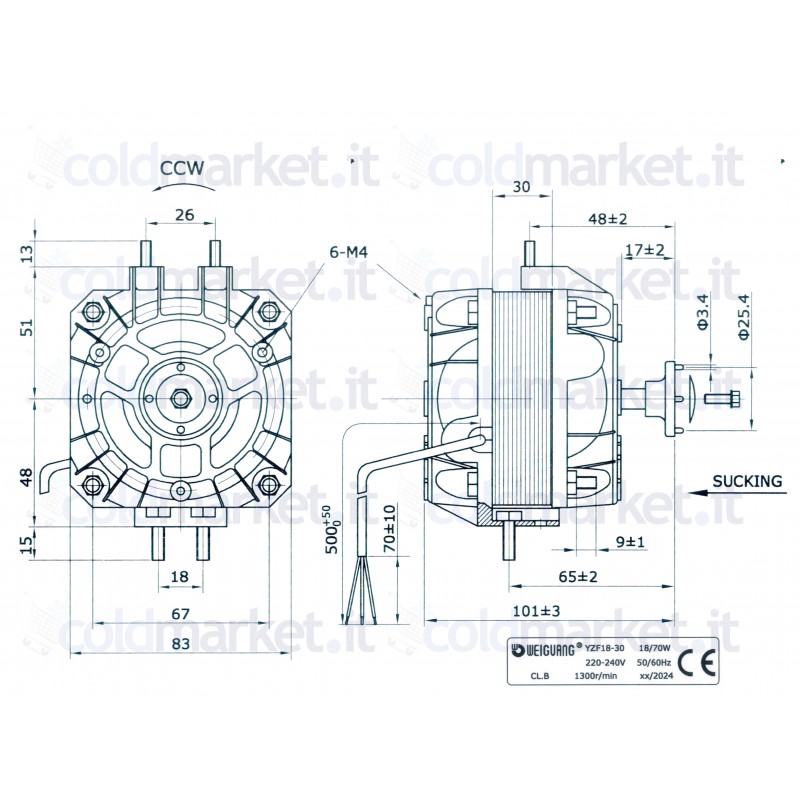 Ventilateur de moteur 18 Watt Pentavalent Weiguang YZF18-30 – 230V 1300 tr/min