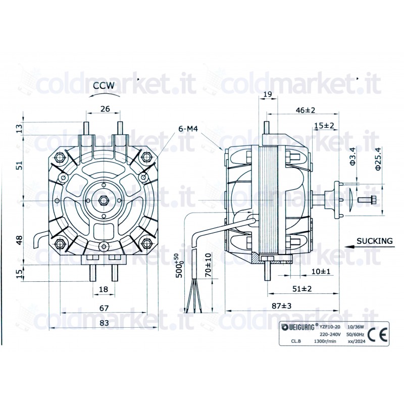 Ventilateur 10 Watt Pentavalent Weiguang YZF10-20 – Emballage de 24 Pièces – 230V 1300 tours/min