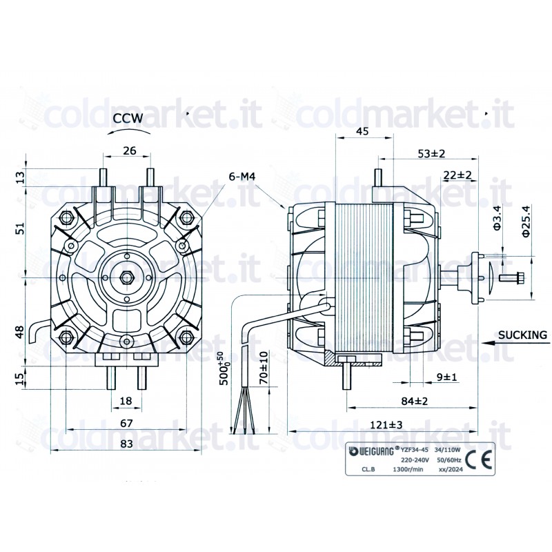 Motoventilateur 34 Watt Pentavalent Weiguang YZF34-45 – Emballage de 12 Pièces – 230V 1300 tours/min