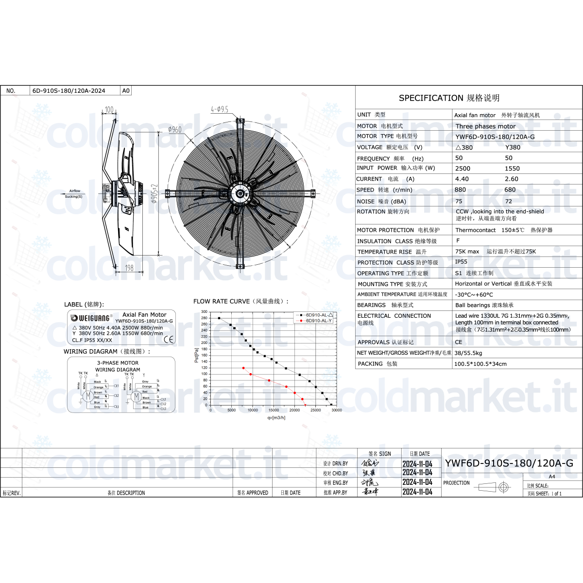 Ventilateur Axial Ø 910 mm Aspirant Triphasé 380V 880 tours/min Weiguang YWF6D-910S-180/120A-G