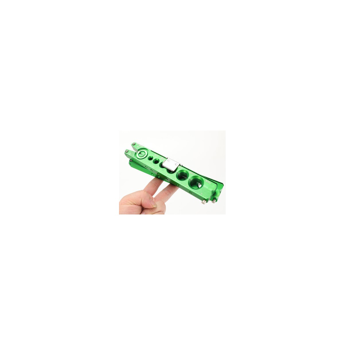 Le corps et les barres de mesure sont réalisés en alliage d'aluminium, rendant l'outil léger, maniable et résistant. Le verrou de tuyau intégré facilite le positionnement correct du tuyau, tandis que le positionnement à bille intégré assure stabilité et précision lors de l'opération de flasquage.