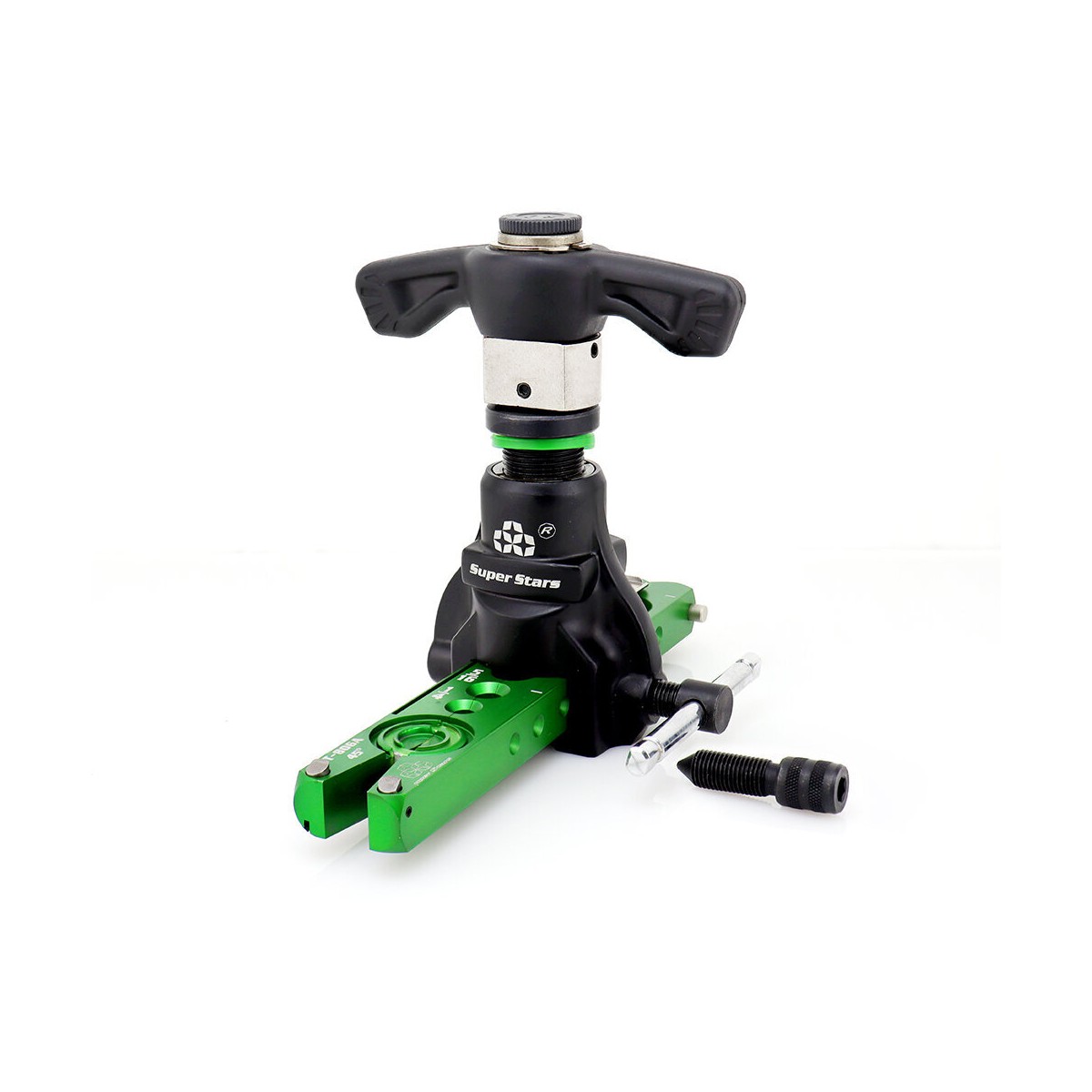 Fabriqué avec un corps en alliage d'aluminium et des barres de mesure intégrées, le ST-R806 garantit légèreté sans compromettre la résistance nécessaire pour un usage intensif. Le butée de tuyau intégrée (tube-stop) aide à maintenir la tuyauterie dans la bonne position pendant le travail, tandis que le positionnement à bille assure stabilité et uniformité du flangage.