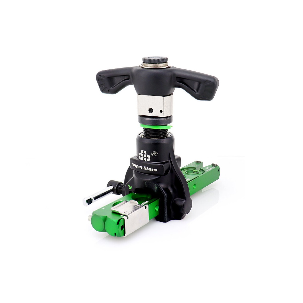 Grâce au mécanisme à cliquet, l'opérateur peut appliquer la force de manière progressive et contrôlée, facilitant le flangage même dans des espaces restreints ou des positions difficiles. Le corps en alliage d'aluminium assure légèreté et résistance, tandis que le fermoir de tube intégré (tube-stop) maintient la tuyauterie correctement alignée pendant le travail. Le positionnement à bille intégré contribue à garantir uniformité et stabilité dans le flangage.