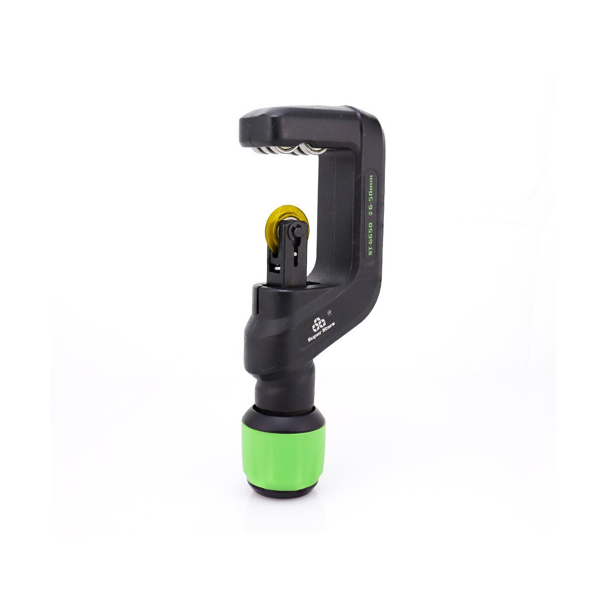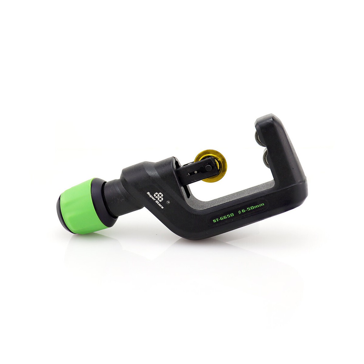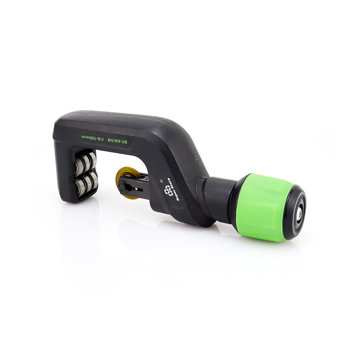 Coupe-tube ST-650S avec champ de coupe 6–50 mm, avec rouleaux de support et dispositif de verrouillage du tube, idéal pour des coupes propres de tuyauteries en cuivre HVAC et réfrigération.
