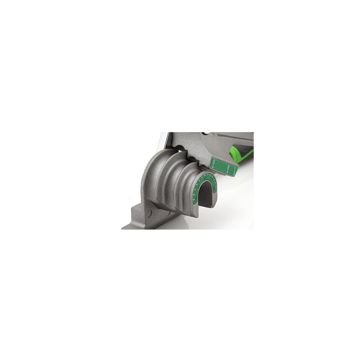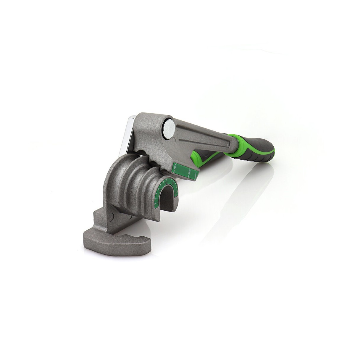 Ce plieur de tubes combine trois fonctions en un seul outil, permettant de travailler sur trois diamètres courants sans changer d'outil. La roue graduée intégrée permet de suivre visuellement l'avancement de la courbure, garantissant des courbes uniformes et sans déformations.
