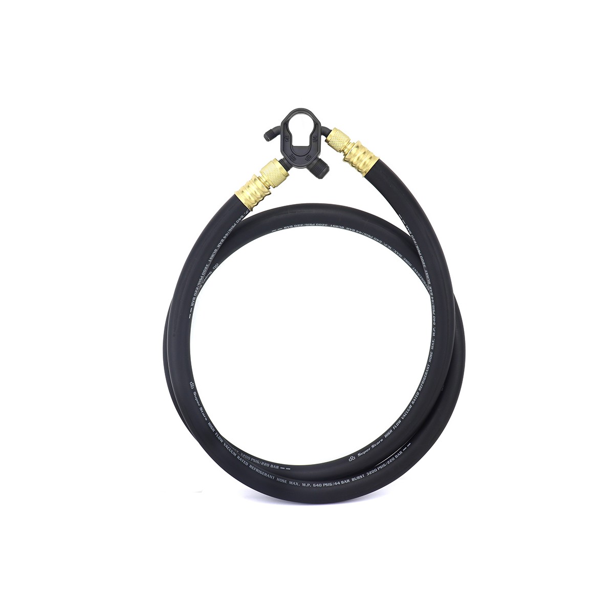 Avec une longueur de 1,8 m et un diamètre extérieur de 1/2″, ce tuyau garantit un flux uniforme et stable pendant les phases d'évacuation et de récupération du réfrigérant, contribuant à réduire les temps d'intervention. Les connexions 1/4″–3/8″ offrent une large compatibilité avec les manifolds, les pompes à vide, les unités de récupération et d'autres outils de service HVAC/R.