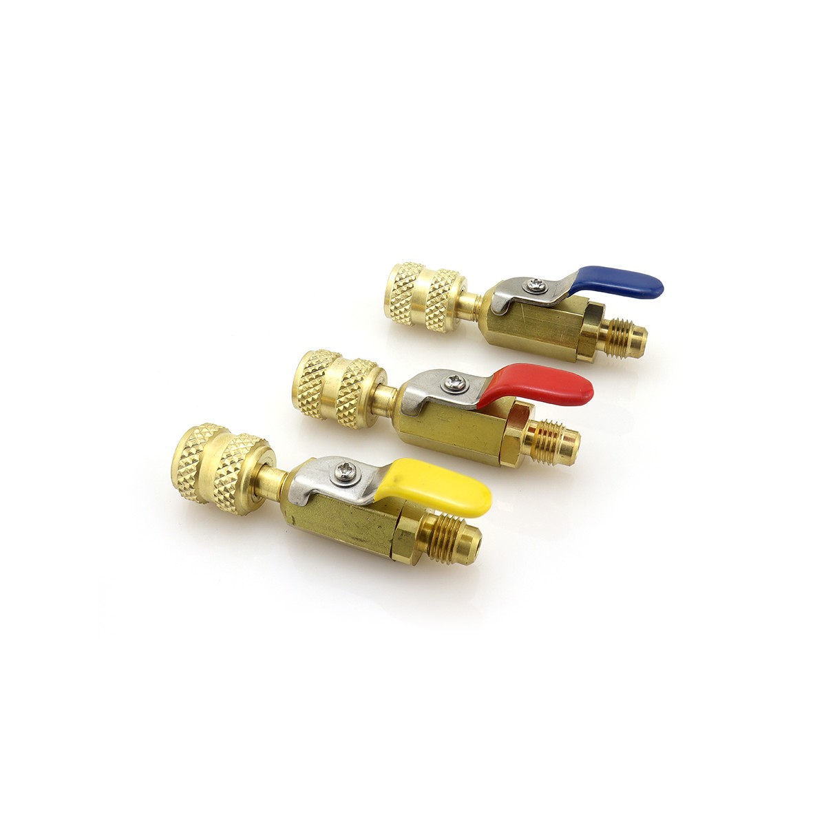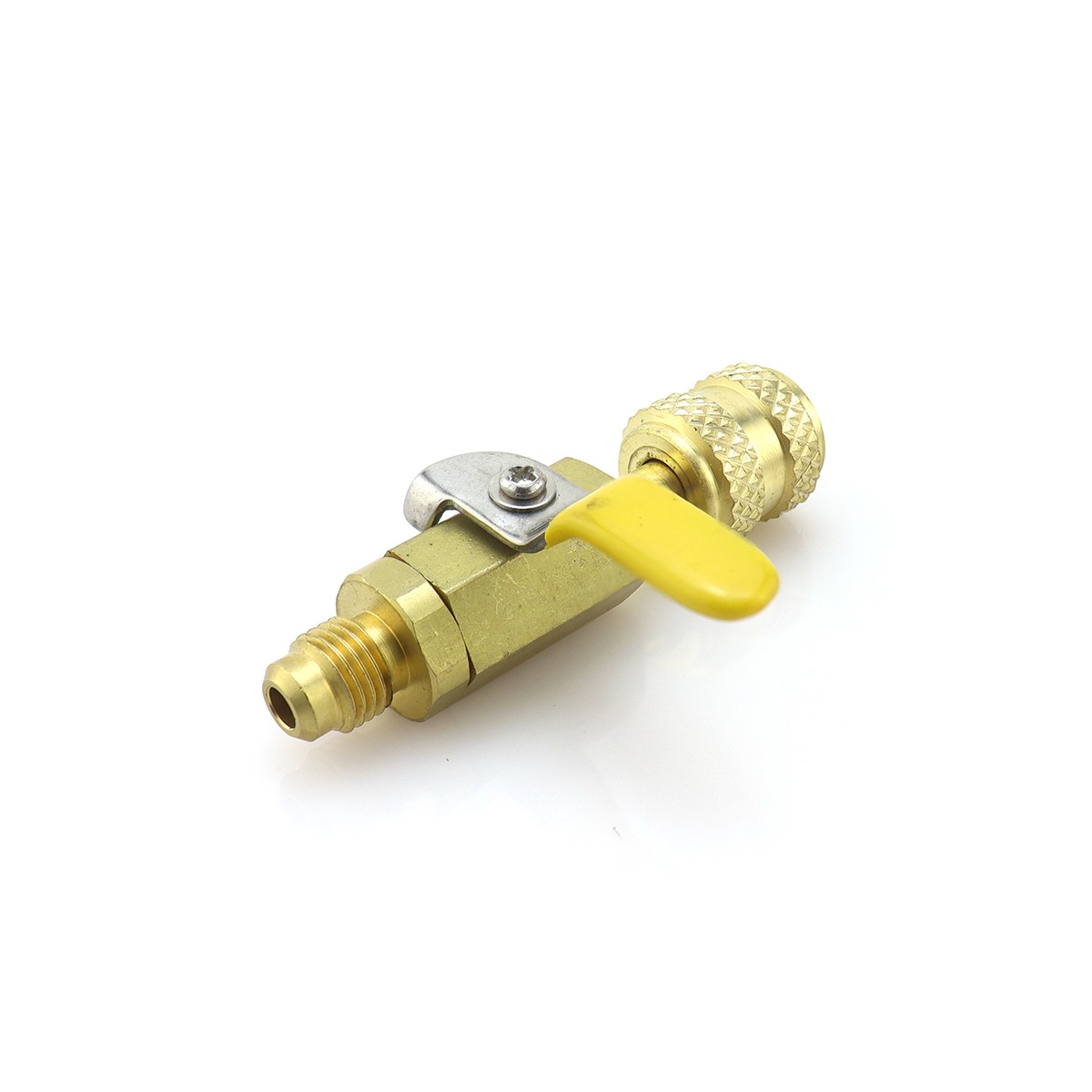 Grâce aux connexions standard SAE 5/16″ et SAE 1/4″, cette vanne de robinet offre une large compatibilité avec les manomètres, les tuyaux de recharge et les outils de service utilisés par les techniciens HVAC/R. La construction en métal haute résistance garantit durabilité et fiabilité, assurant des performances constantes même lors d'utilisations intensives en atelier ou sur site.