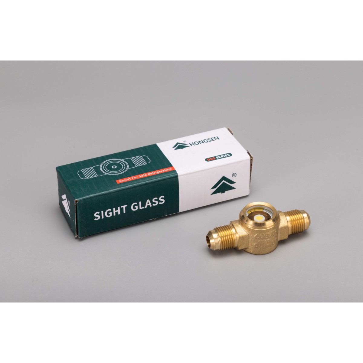 Indicateur d'humidité et voyant de liquide de refroidissement Hongsen SGN-1/2 SAE, avec raccord fileté 1/2” SAE et corps en laiton. Idéal pour contrôler visuellement le flux du liquide de refroidissement dans la ligne liquide et détecter la présence d'humidité ou de bulles dans les systèmes CVC et de réfrigération commerciale.