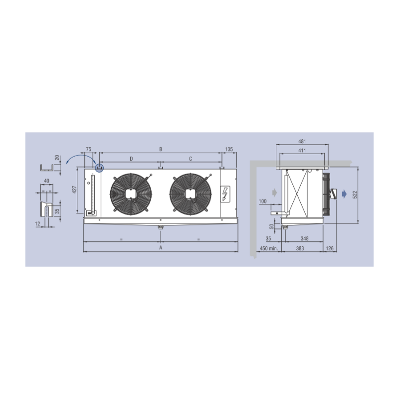 | Motoventilatori | n° x Ø mm | 1x250 | 1x250 | 2x250 | 2x250 | 3x250 | 4x315 | 1x350 | 1x350 | 2x350 | 2x350 | 3x350 |