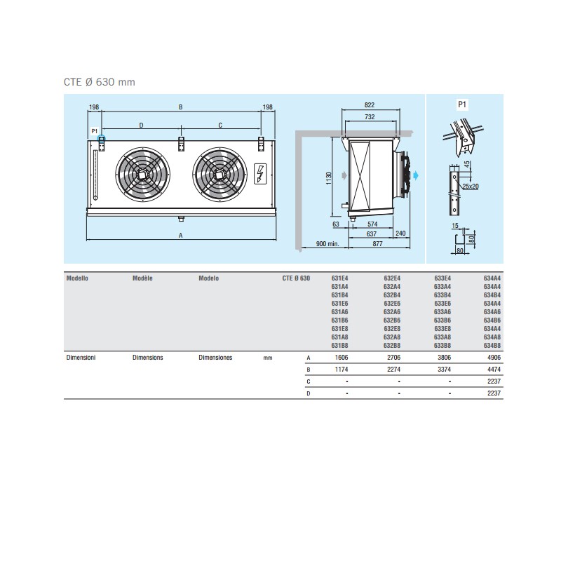 CTE E4 - A4 pour hautes températures (>= +2 °C) avec un pas d'ailettes de 4,0 mm