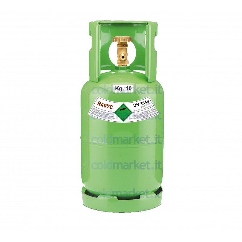 Le gaz réfrigérant R407C en bouteille de 10 kg est un réfrigérant professionnel utilisé pour l'entretien, le service et la réparation des installations de climatisation et de pompes à chaleur déjà installées et conçues pour fonctionner avec le R407C.