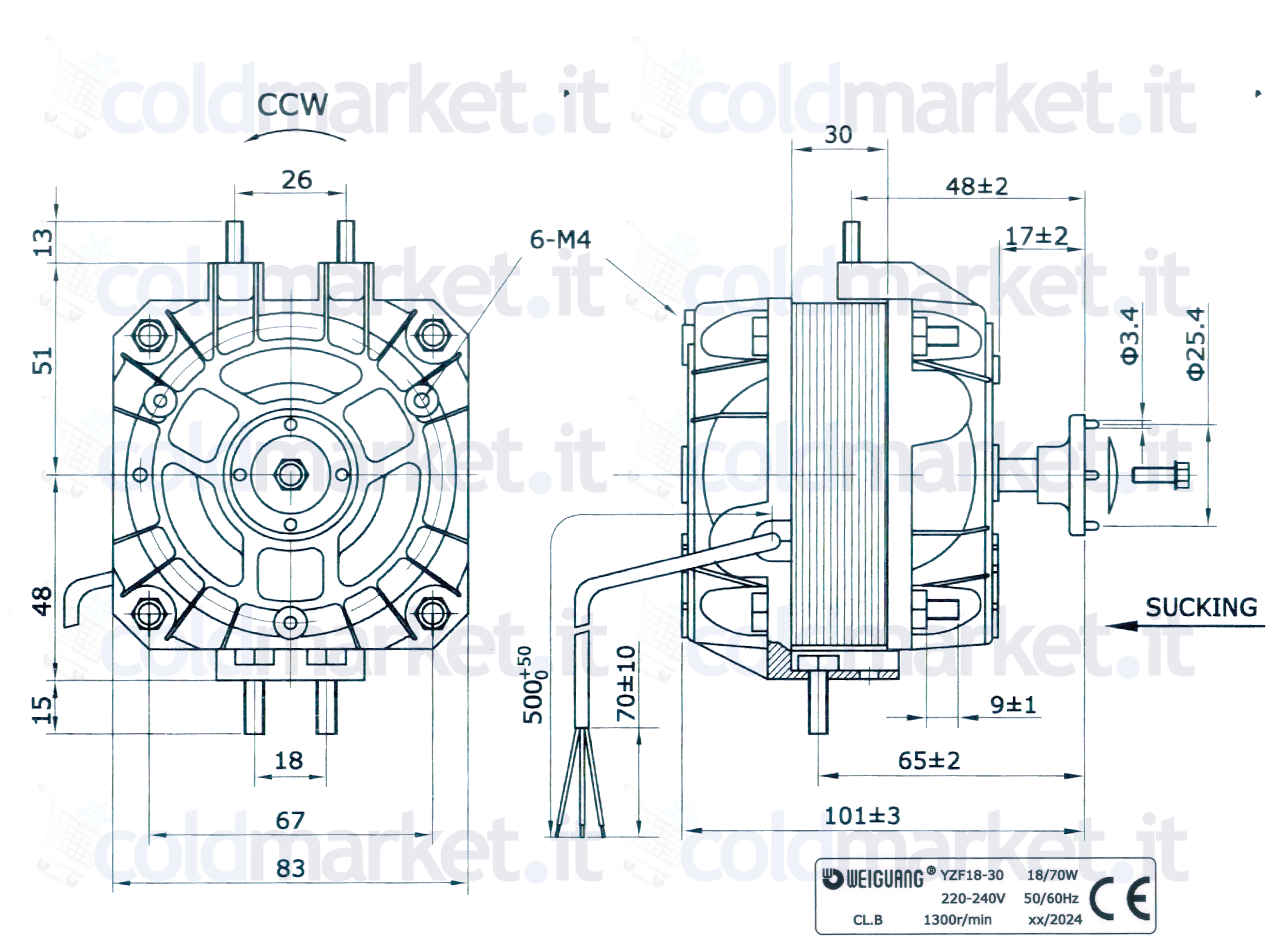 La velocità di 1300 giri/min e la compatibilità con ventole fino a Ø 300 mm (22° max) rendono questo modello particolarmente adatto a evaporatori di media dimensione, celle frigorifere e unità di ventilazione tecnica.